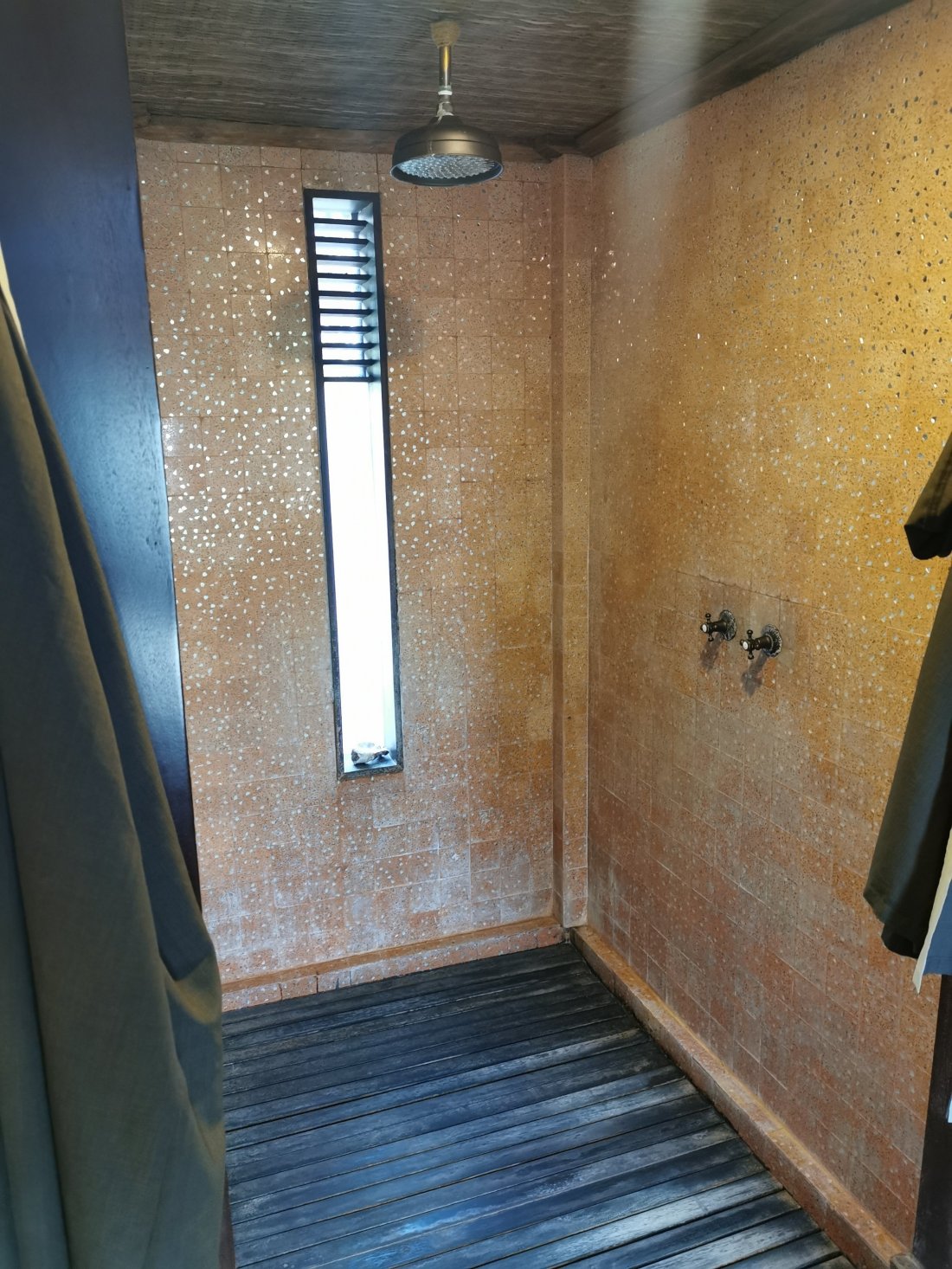 Danach geht es durch den Garten zu den Zimmern. Unseres besteht aus einen Vorraum und daneben einem Raum mit 2 großen Waschbecken (auch wenn hier nur eins zu sehen ist).