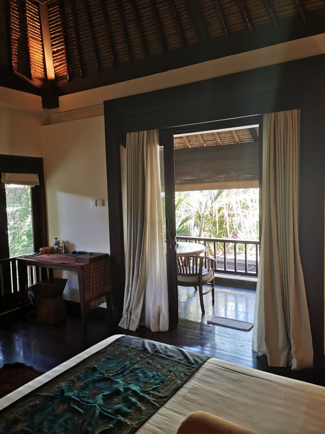 Das Zimmer selbst ist riesig, hat ein unglaublich hohes, traditionelles Dach ein sehr bequemes Bett.