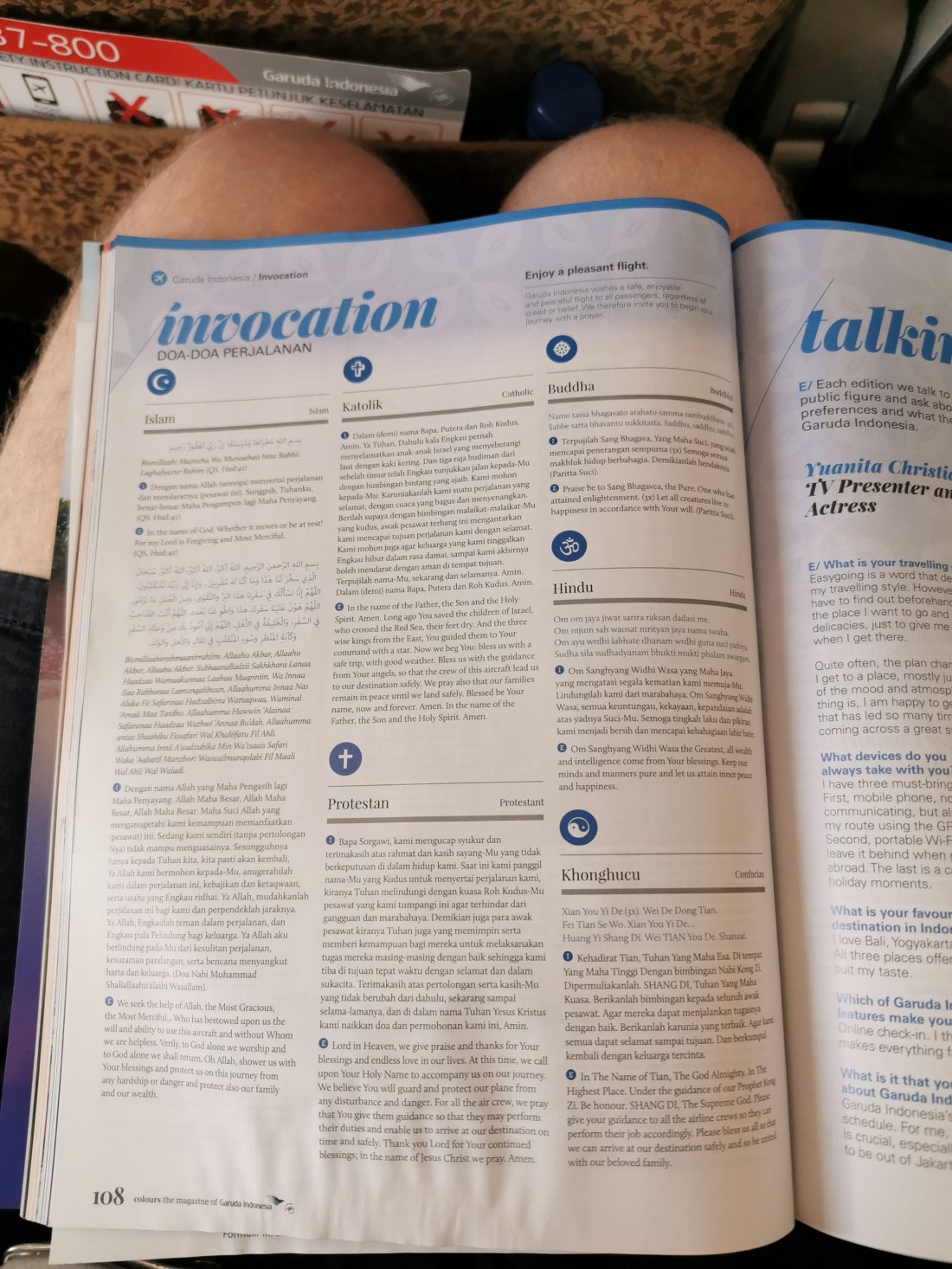 Also für einen 24 Minuten Flug rein in den Garuda Indonesia Flieger und mal kurz ins Bordmagazin geschaut (es gibt zwar in flight entertainment, lohnt sich aber bei dem kurzen Flug nicht wirklich).
