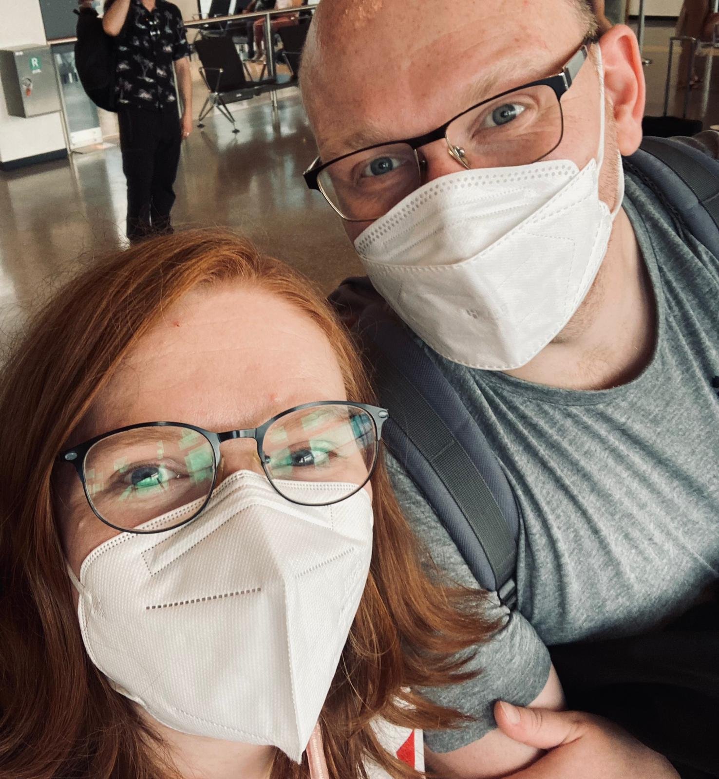 Wir stehen grad am Gate und warten auf unseren Flieger.