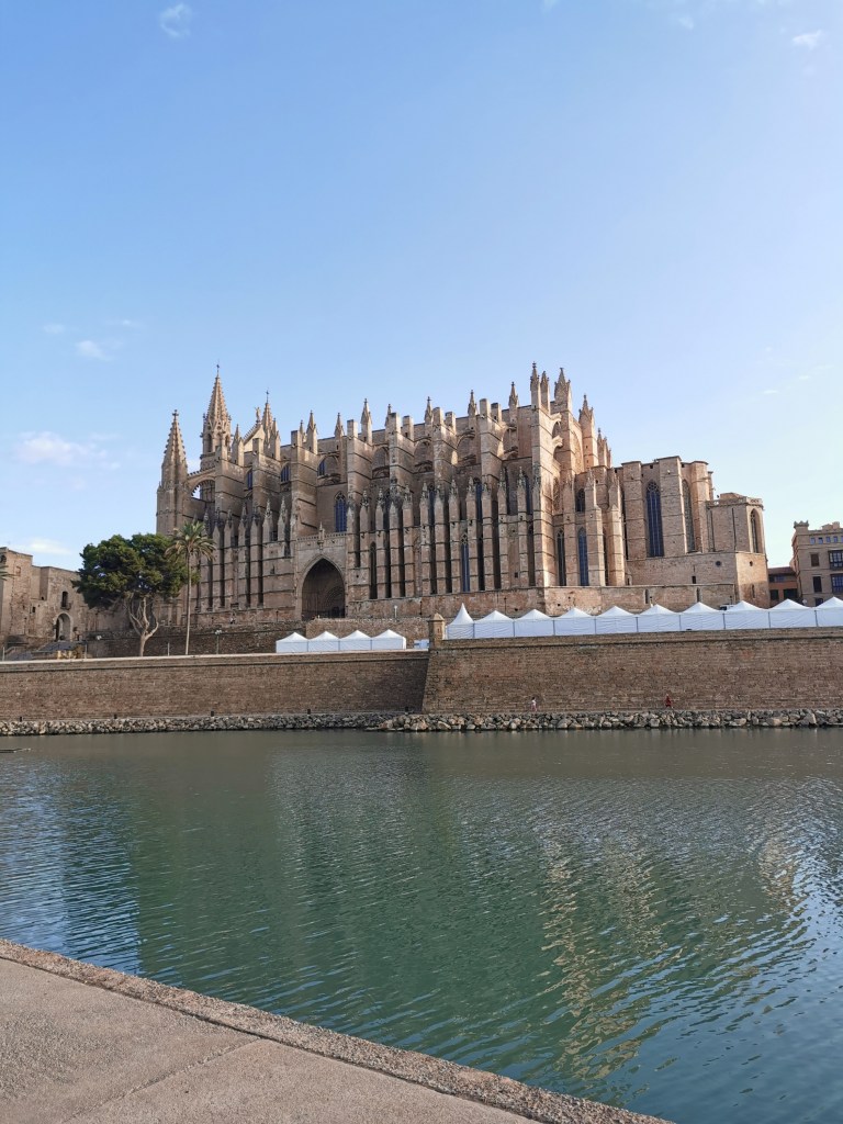 Wecker-früh ging es los nach Palma und in ein praktisches Parkhaus an der Kathedrale. Man fährt einfach von der Hauptstraße ab, direkt geradeaus, leicht nach unten, und schlendert keine Minute später ebenerdig auf den künstlichen See vor der Kathedrale zu. Einfacher geht es kaum.