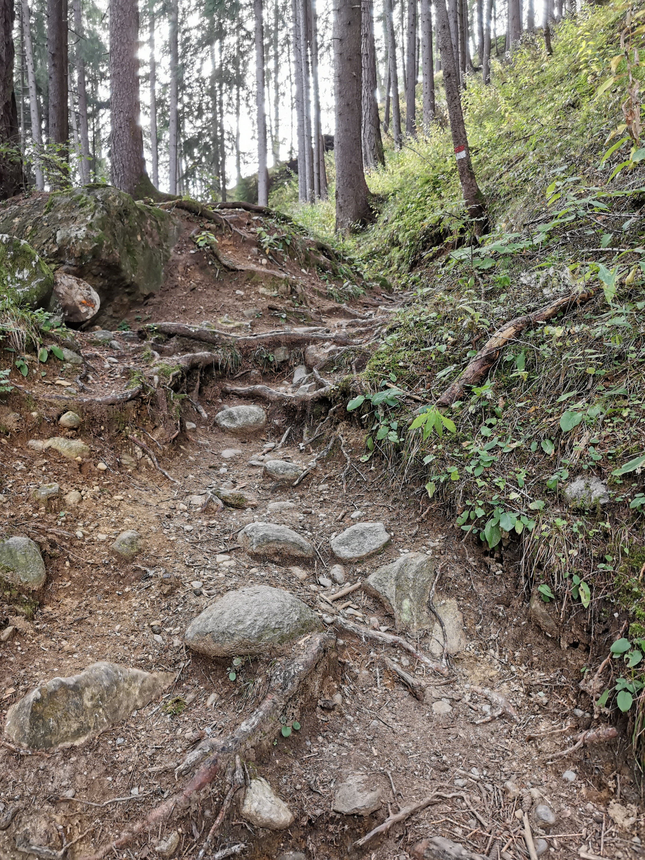 In den nächsten 45 Minuten habe ich 300 Höhenmeter auf einem sau steilen Weg überwunden, der manchmal irgendwie nur aus Wurzeln Bestand.
