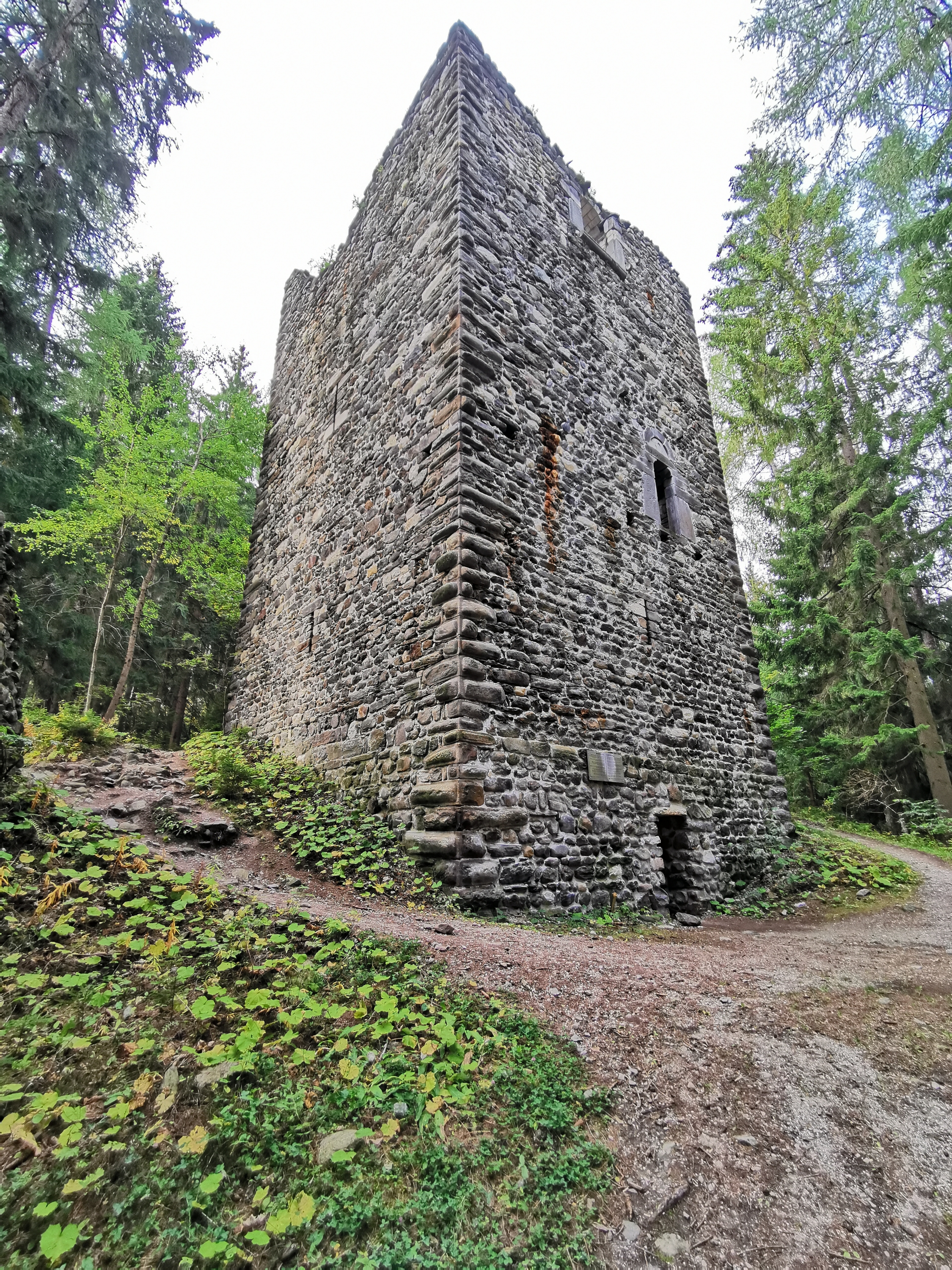 Die Ruine ist nur ein Überbleibsel einer größeren Anlage aus dem 13. Jahrhundert und nur ein kleiner Teil Mauer und der Wohnturm stehen noch. Es ist aber, gerade durch das in den Wald gewachsene, sehr schön.