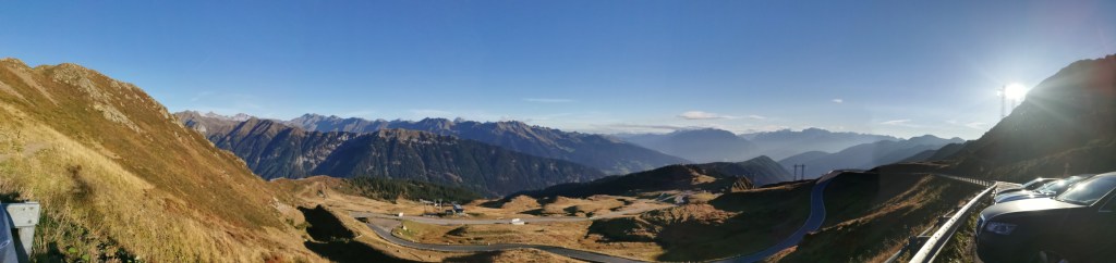 Der Dienstag begann früh mit einer Fahrt nach Meran. An sich nur 42 KM Luftlinie entfernt, aber doch eine Fahrt von 90 Minuten über den Jaufenpass. Durch die frühe Stunde war der Pass noch leer und mir am Ende ein klitzekleines bisschen schlecht. Das lag GANZ BESTIMMT nicht an meiner Fahrweise :-).
