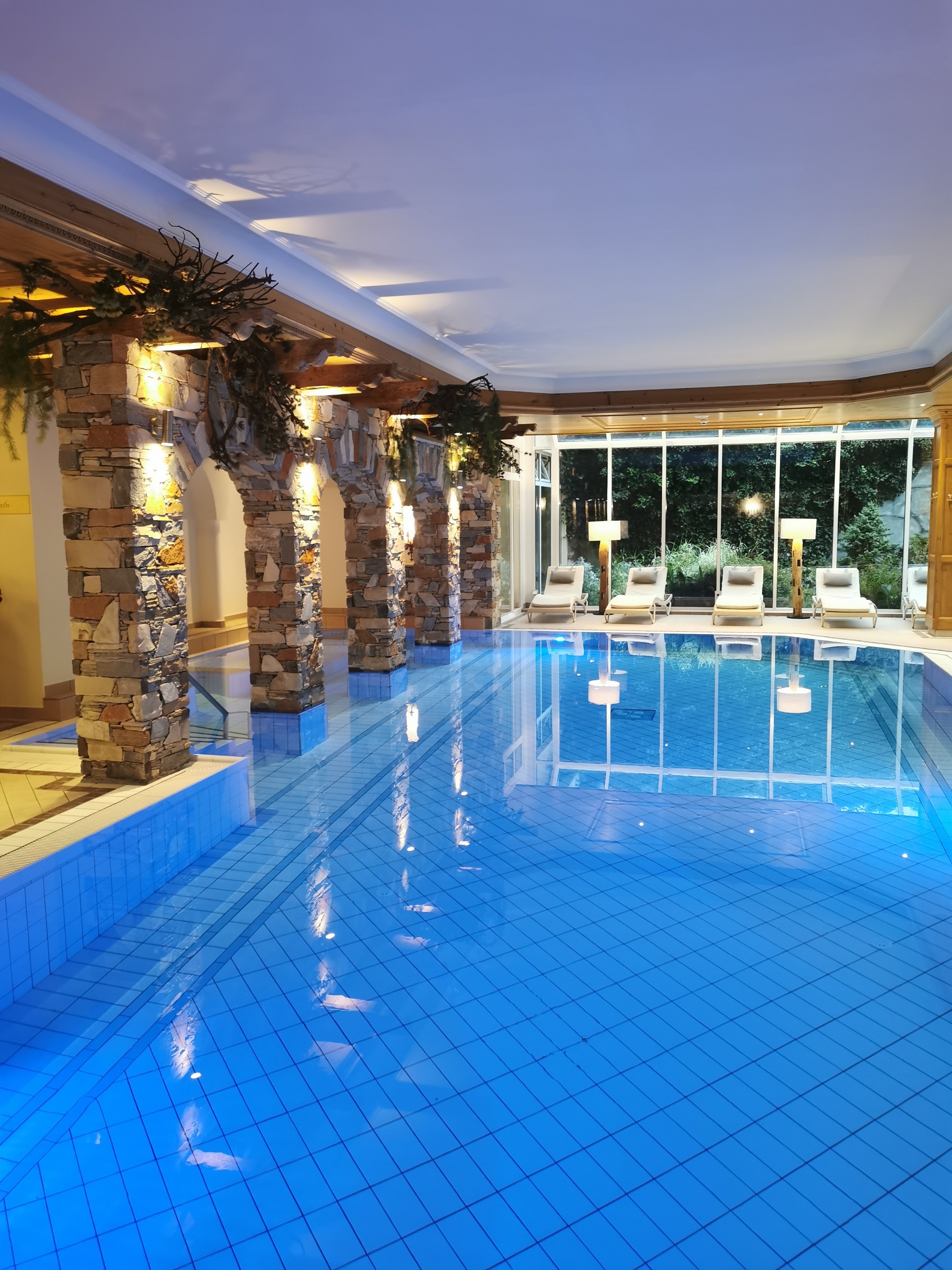 Am Morgen haben wir uns den Wellnessbereich etwas genauer angeschaut und sind in für ein paar Bahnen in den Pool gesprungen. Bis auf den fehlenden Kinderbereich ist das Programm hier dasselbe wie im Hotel Bergblick in Ratschings. Gegenstromanlage, Massagedüsen und dazu ein Whirpool. Der fehlende Kinderteil ist vom Hotel beabsichtigt, Zutritt ist im Wellnessbereich erst ab 14 Jahren. Das ist vielleicht der größte Kritikpunkt am Hotel bisher: Alles ist sehr herzlich und persönlich, aber ganz klar ausgelegt auf ein bestimmtes Klientel, das in Porsche und Range Rover vorfährt – und ganz sicher nicht mit Kindern. Aber für ein paar Tage geht das schon mal :-).