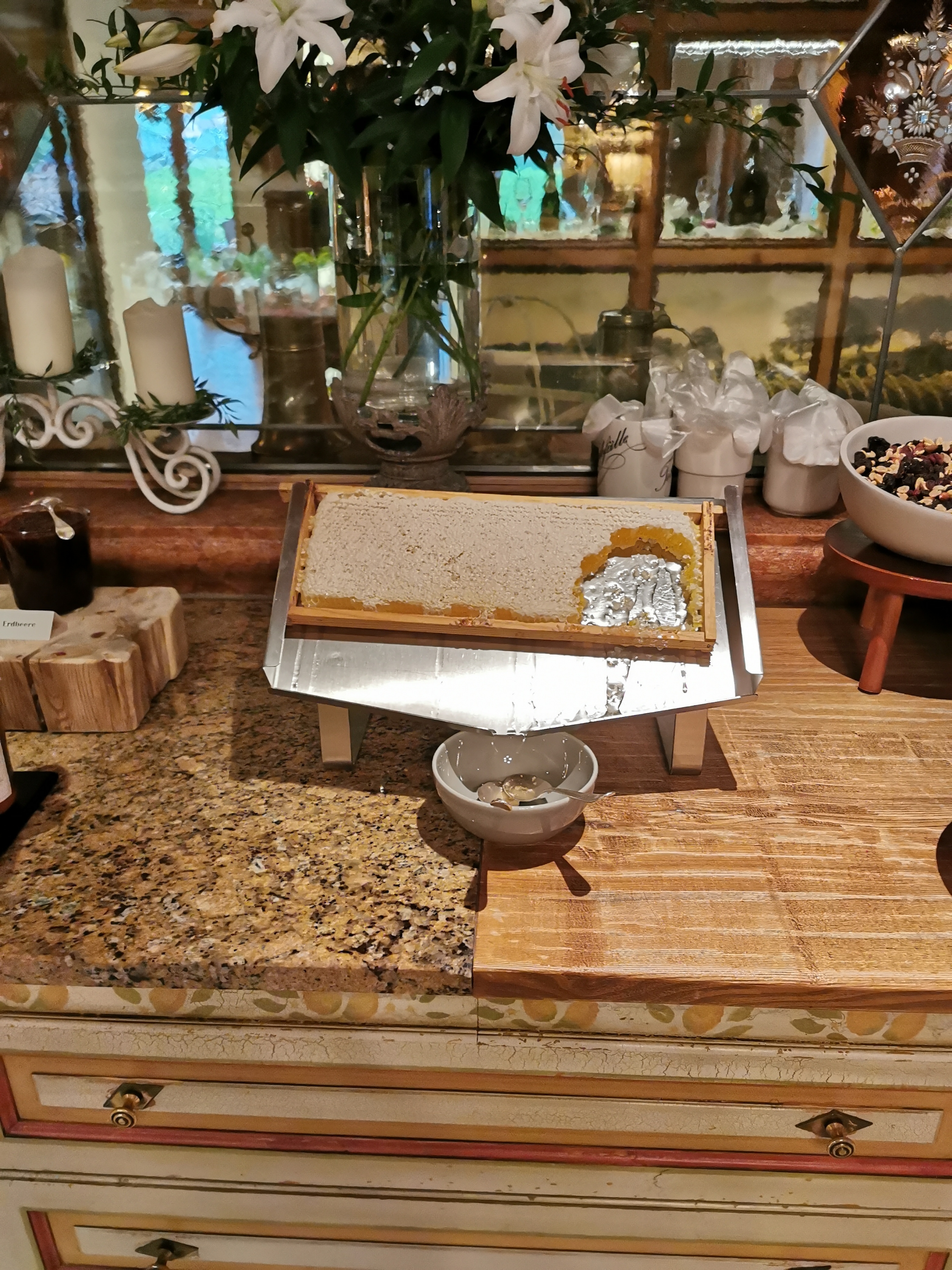 Nach dem Schwimmen ging es auf zum besten Frühstück das ich bisher hatte (ich krieg gleich schon wieder Lust drauf). Zur Verdeutlichung: Es gab 4 lokale Honigsorten – aber man konnte sich den Honig auch einfach aus der bereitgestellten Wabe nehmen. Das beschreibt den Rest schon ganz gut.
