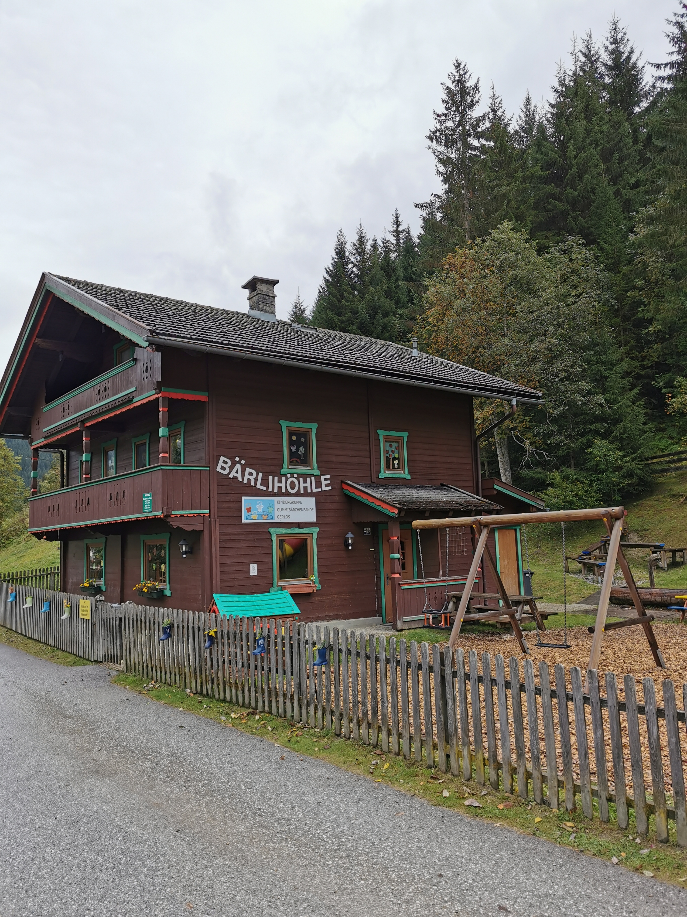 Ach, die haben hier um die Ecke nen Kindergarten. Die Gruppe heißt Gummibärchenbande und die Kita selbst ist die Bärlihöhle. Ich glaub ich bleib…