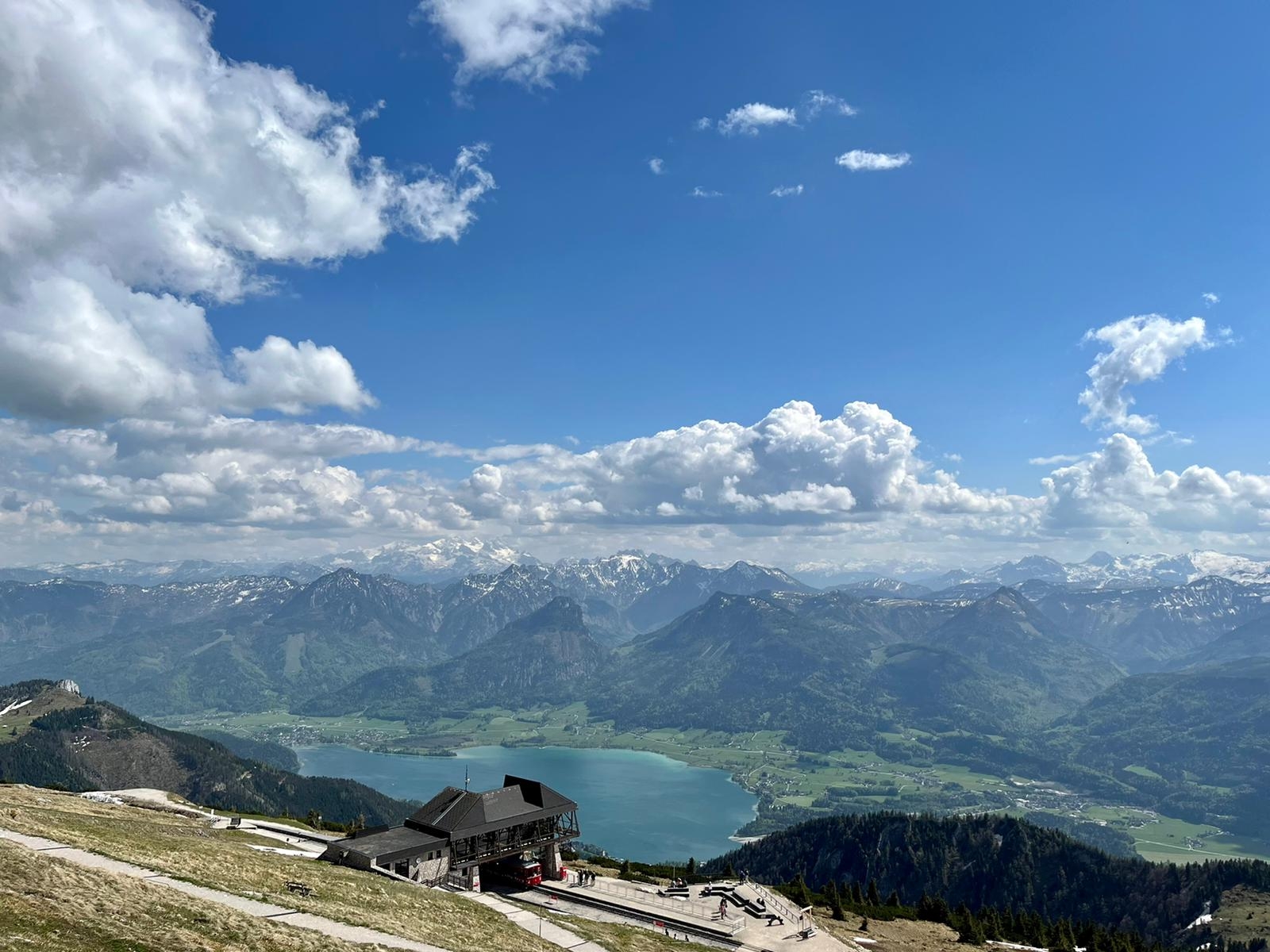 Noch viel schöner tatsächlich! Mit vollen Bäuchen und etwas Sightseeing ging es zurück in Richtung Parkplatz und zur Talstation der Schafbergbahn. Für die Nerds unter uns: die steilste Bahn Österreichs. Im Normalfall mit Dieselloks an Zahnrad betrieben, einmal die Woche mit historischen Dampfloks von 18 hundert irgendwas.