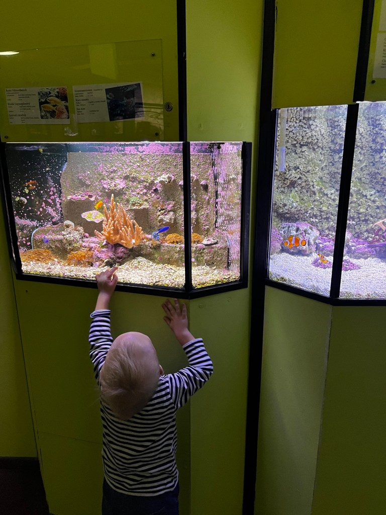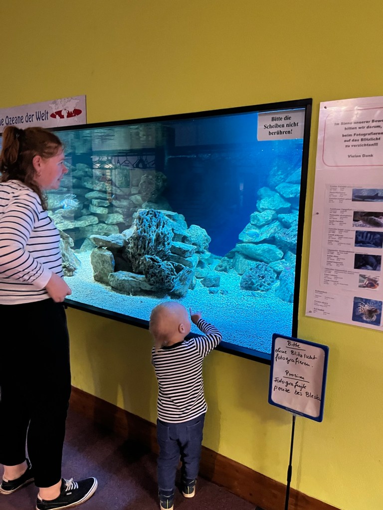 Für uns ging es jedoch nicht zum Sport, sondern ab in den Keller. Da findet sich eine große Bowlingbahn mit aufmerksamem Personal und schönen Ideen, das Ganze ansprechend zu gestalten (wissen wir, weil es da Eis gab) und eben auch das Aquarium. Wie das jetzt zu Oberwiesenthal passt, sei mal dahin gestellt, aber das Kind hatte einen riesen Spaß. Da wurde von Fisch zu Fisch gerannt, die Piranhas etwas argwöhnisch beobachtet und beim Krokodil musste Papa ein wenig streicheln.