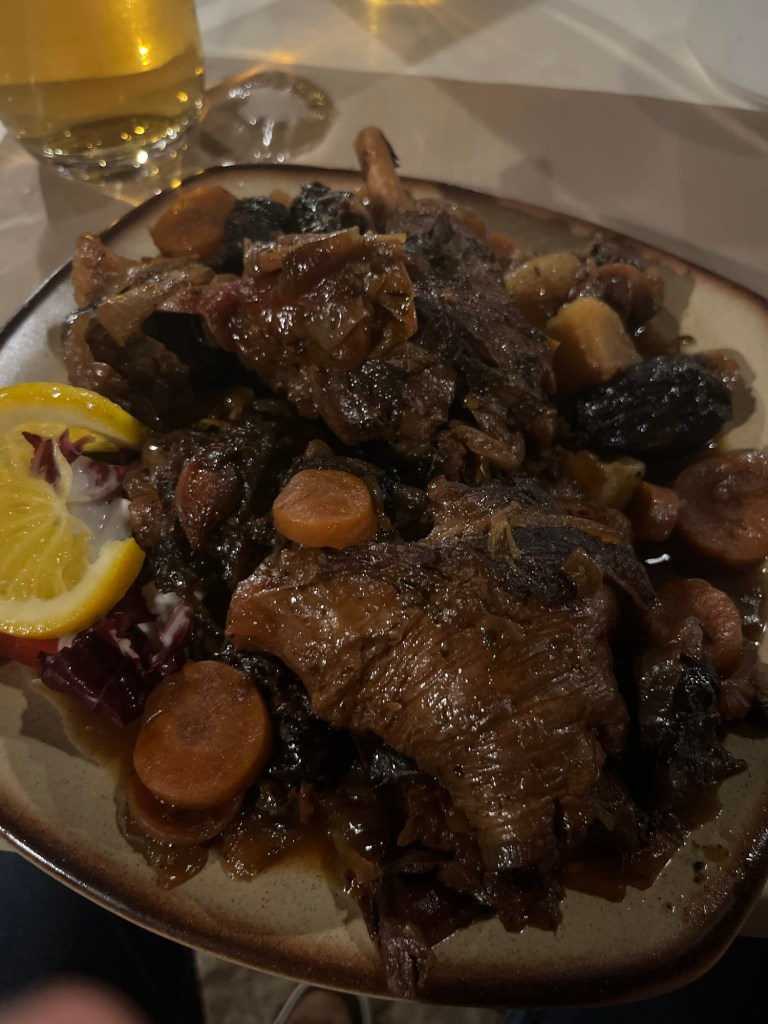 Jetzt sitzen wir im Cas Busso, einem Restaurant mitten im nirgendwo, das wir 2021 mit Lui und Basti entdeckt haben. Auch wenn „uninspiriert“ für den Service noch viel zu nett wäre, das Essen ist wahnsinnig lecker. Ich freu mich ja morgen zu Ria und Puschel heim zu kommen, aber die mallorquinische Küche würd ich gern mitnehmen.