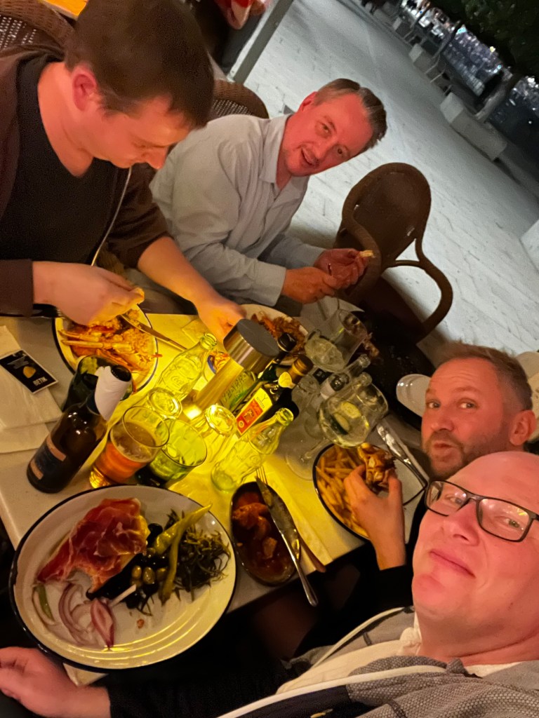 Den Tag haben wir bei dezent stürmischem Wetter, aber viel Sonne irgendwo zwischen Strand, Schwimmen, Boule, Volleyball (also kurz, die anderen Spieler waren einfach zu voll) und dem Pool verbracht. Einen von Markus Wasserball angriffen habe ich mir selbst auf die Nase gelenkt, das pocht noch ein wenig.