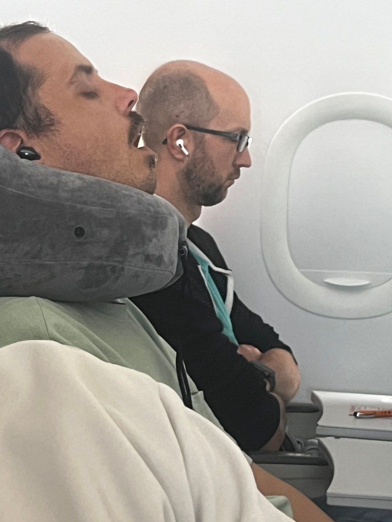 Die Reihe hinter uns war leer und so konnte jeder so sitzen wie er wollte, das war ganz praktisch.