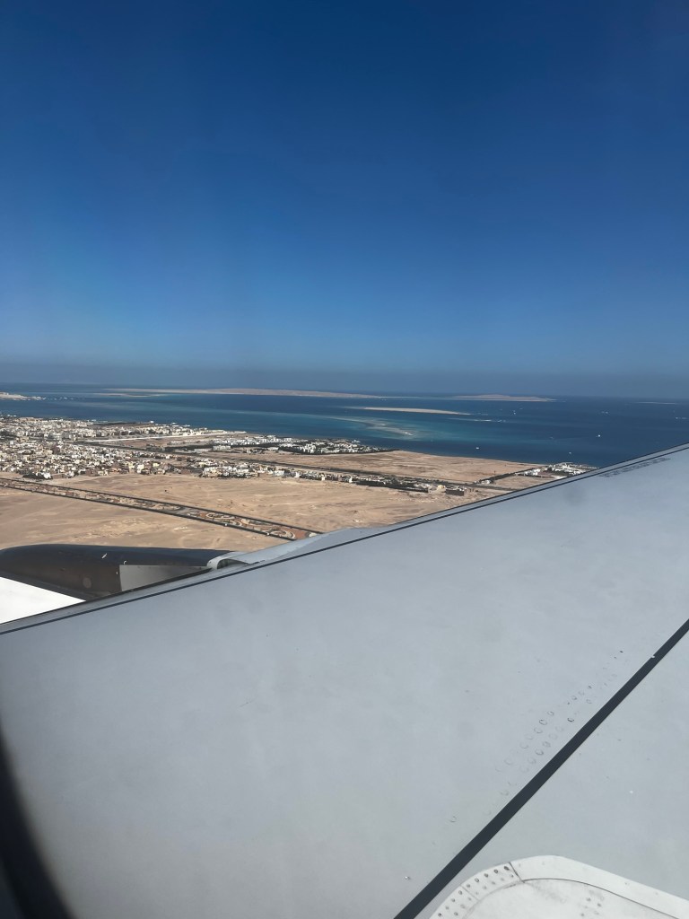 Über Hurghada gabs n paar Kurven und so konnte jeder sehen aus was die Stadt besteht: ein Resort nach dem anderen und wahnsinnig blaues Meer. An sich zu erwarten, aber die geballte Künstlichkeit ist dann doch überraschend.
