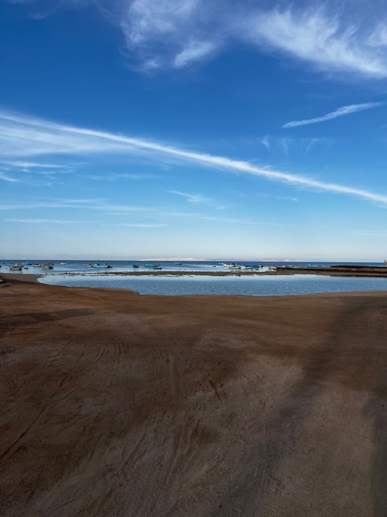Auf ging es in die „Ägyptischen Malediven“. Ein langer Streifen mit purem weißen Sand Boden, etwa 1 Meter tief und der perfekte Start, um nur Unsinn zu machen.