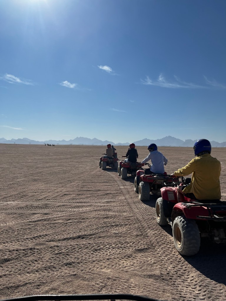 Um 12 kam unser Transfer zum Quad fahren. Auf ging es in einer 30 Minuten Fahrt zum Quad Stützpunkt in der Wüste.