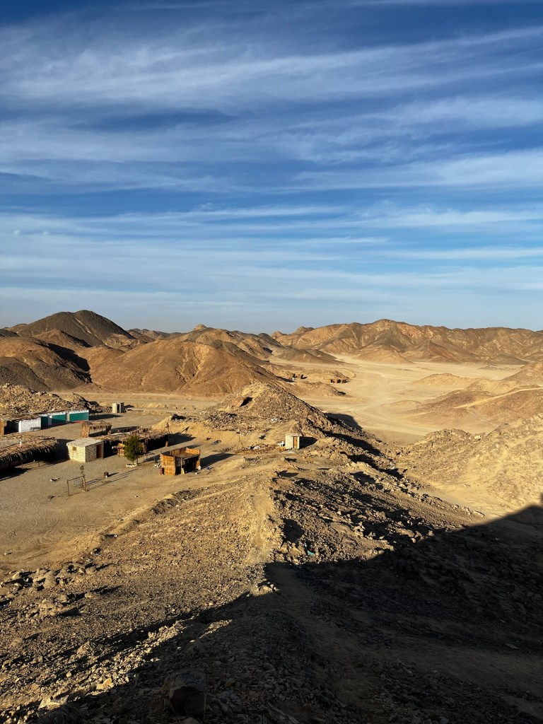 Neben einem tollen Blick auf die umliegende Wüste und die Berge entdeckt man immer mehr kleine Hütten in den verschiedensten Tälern. Im Normalfall sehr klein und gemauert. Meist einzeln, teils auch in Ansammlungen. Je weiter man schaute, umso vereinzelter wurden sie und dadurch, dass sie zwischen den Bergen versteckt waren, war es schwer, ihre Zahl zu schätzen.