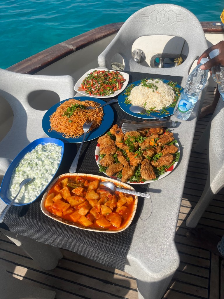 Zurück an Bord gab es ein verdammt leckeres Mittagessen und dann viel Zeit, die Sonne zu genießen, bevor wir zum letzten Schnorchelstop gefahren sind. Hier wurden wir vom Boot abgesetzt und sollten mit der Strömung zu einer definierten Stelle schwimmen, um dort wieder aufgelesen zu werden. Die Strömung ging zwar genau in die andere Richtung, aber Boot und Crew blieben die ganze Zeit aufmerksam in der Nähe und kamen auch sofort, als sie dachten, wir stünden auf Korallen oder bräuchten Hilfe.